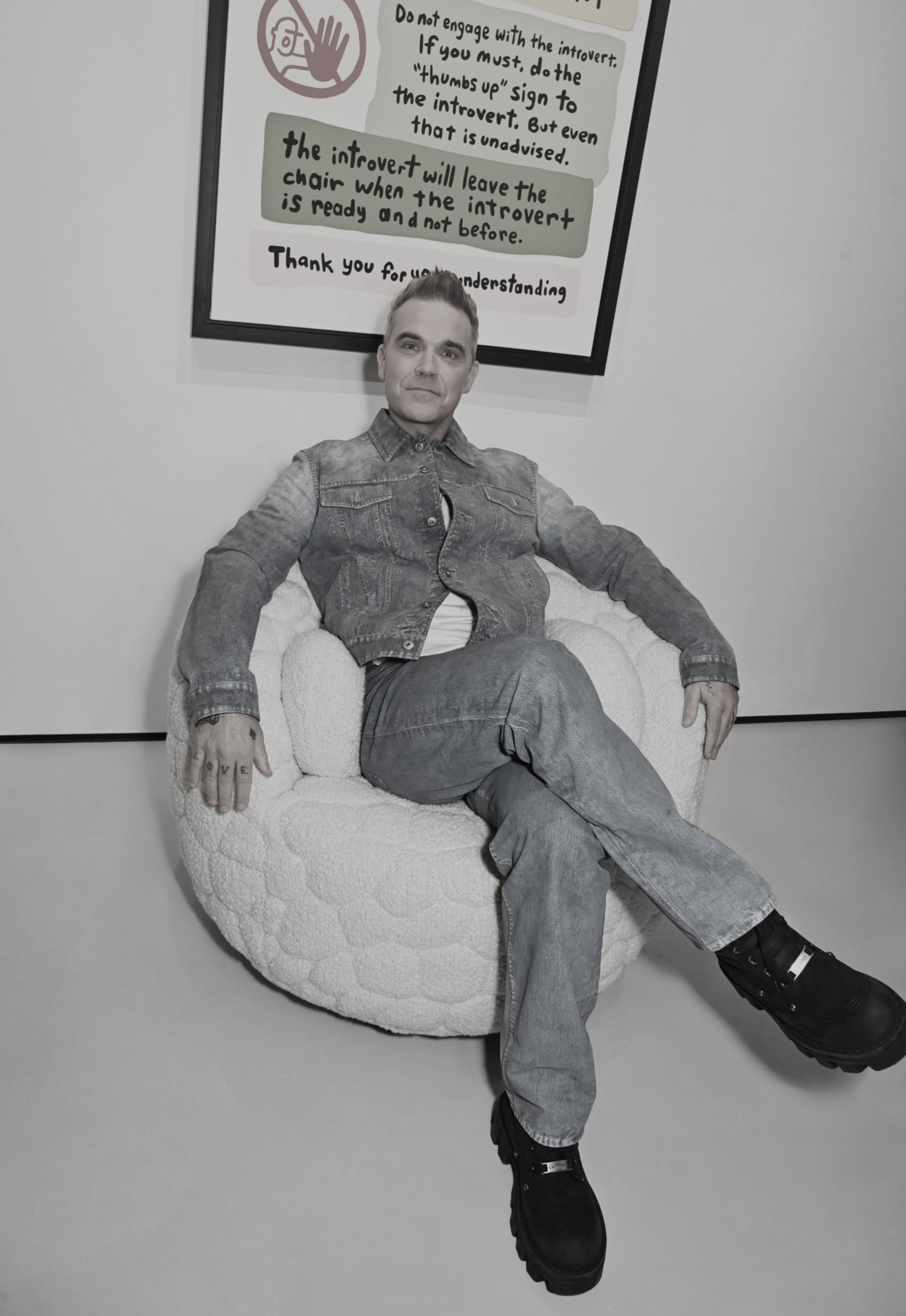 De ícone pop a artista visual expressivo, Robbie Williams traz a mesma energia crua e sem filtros que o tornou uma estrela global para seu segundo ato: a arte. Desde 2023, suas obras de arte ocupam o centro das atenções no Museu Moco em Amsterdã, Barcelona e Londres, onde sua terceira exposição individual, Radical Honesty, estreou The Introvert Chair – uma colaboração de design com a Moooi. Seu trabalho é uma exploração ousada e vulnerável da vida interior, onde ansiedade, vergonha, ego, humor e cura coexistem no mesmo contexto. Ele nos convida a entrar em uma mente moldada pela fama e fragmentada pela pressão por meio dessas formas vívidas e caricatas. Exatamente como ele mesmo diz: “As coisas que me destruíram também me fizeram bem-sucedido”. Sua arte – e agora seu primeiro objeto de design – oferece um antídoto para a sobrecarga. The Introvert Chair é uma continuação dessa prática artística: parte escultura, parte campo de força emocional. Ela fala do desejo universal de se retrair, refletir e rir um pouco da vida. Robbie Williams não está apenas emprestando seu nome ao design. Ele está expandindo a linguagem do que o design pode parecer.