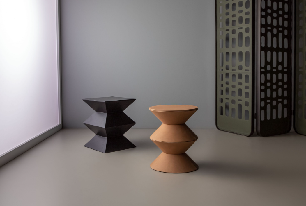 Banco em metal e assento em couro natural estofado.Banco em metal e assento em couro natural estofado