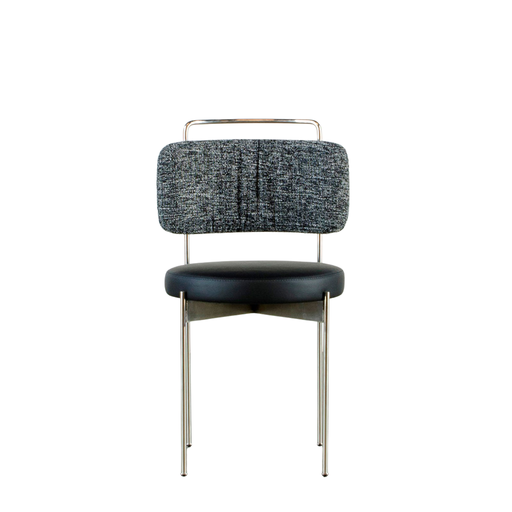 Estrutura em aço inox e assento em tecidos ou couros diversos.