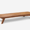 Em madeira maciça cumaru com acabamento Verniz EPS Natural, próprio para área externa.