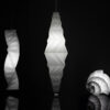 **“IN-EI”** – termo japonês para “sombra, sombreamento, nuance”. A arte da iluminação possui uma herança conceitual e tecnológica no Miyake Design Studio que remonta a 2010, quando Issey Miyake e sua equipe de pesquisa e desenvolvimento, chamada Reality Lab., apresentaram o projeto **132 5. ISSEY MIYAKE**. Esse novo processo foi desenvolvido com o uso de um programa matemático baseado em princípios geométricos tridimensionais, criado por Jun Mitani. O **132 5. ISSEY MIYAKE** é uma forma extremamente engenhosa de produzir vestuário e representa mais um exemplo dos caminhos que a busca por tecnologias têxteis inovadoras pode seguir. O projeto nasce da interseção entre criatividade e matemática, resultando em roupas que podem ser dobradas de forma plana e se transformar em volumes tridimensionais a partir de uma única peça de tecido. À medida que o Reality Lab. explorou o potencial do **132 5. ISSEY MIYAKE** para além do vestuário, a iluminação surgiu como uma extensão natural desse processo. Assim nasceu o **IN-EI ISSEY MIYAKE**, fruto de uma colaboração com a Artemide, unindo a expertise da marca em iluminação à abordagem inovadora do laboratório em relação a materiais e design. A coleção de luminárias **IN-EI ISSEY MIYAKE** foi co-desenvolvida e fabricada pela Artemide. Trata-se de uma linha de luminárias de piso, de mesa e pendentes. Cada cúpula é criada a partir de princípios matemáticos bidimensionais ou tridimensionais, nos quais luz e sombra se alternam de forma harmoniosa. A tecnologia exclusiva de dobras de Miyake cria formas esculturais e, ao mesmo tempo, garante a solidez necessária. A estrutura do material reciclado, aliada a um tratamento de superfície adicional, permite que as cúpulas mantenham perfeitamente sua forma sem a necessidade de estrutura interna, podendo ainda ser remodeladas quando necessário. Quando não estão em uso, podem ser facilmente armazenadas de forma plana.