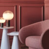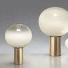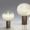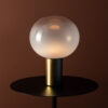 Uma base cilíndrica acomoda a fonte de luz, ocultando-a e, ao mesmo tempo, sustentando o difusor de vidro soprado. O vidro leitoso soprado com proteção de vidro plano permite obter uma luz suave na superfície de trabalho ou na parede e uma luz mais intensa em direção ao ambiente.