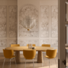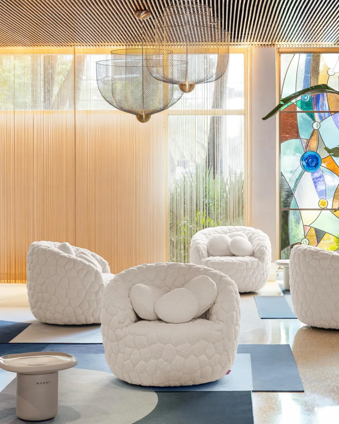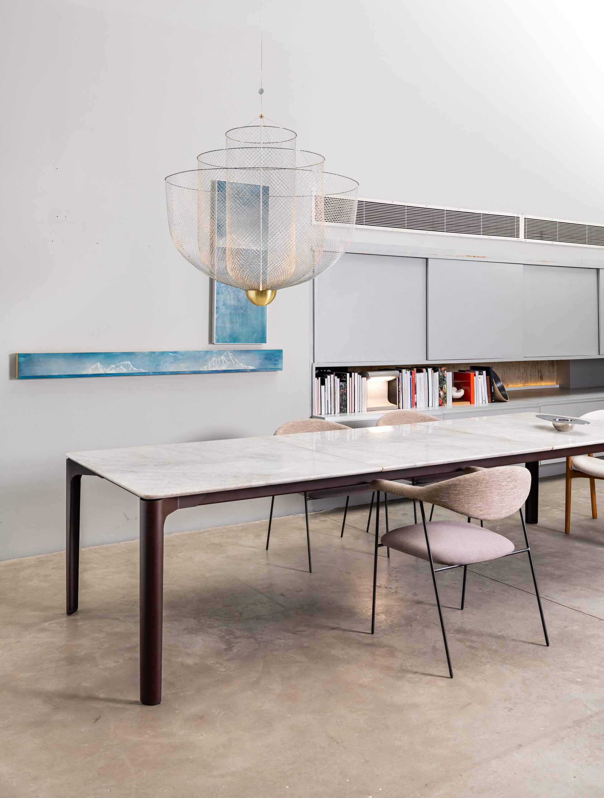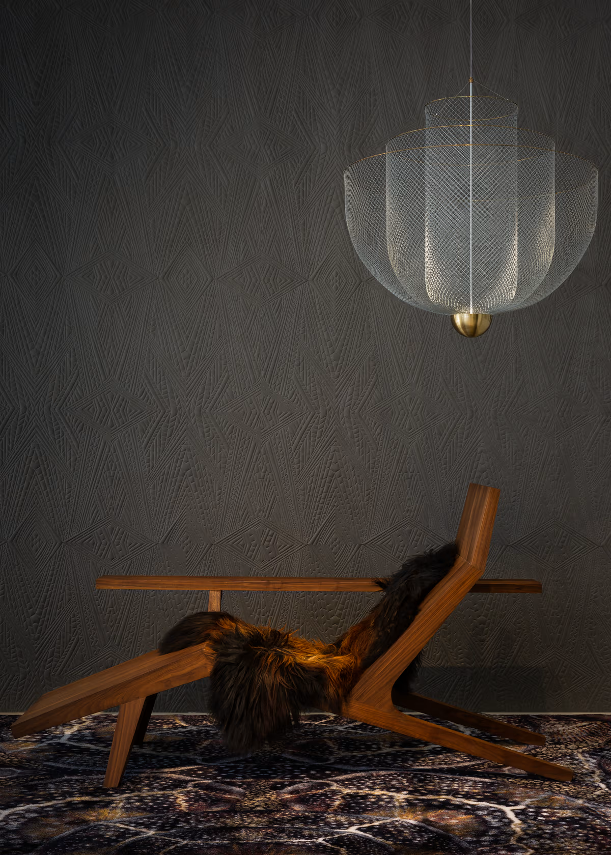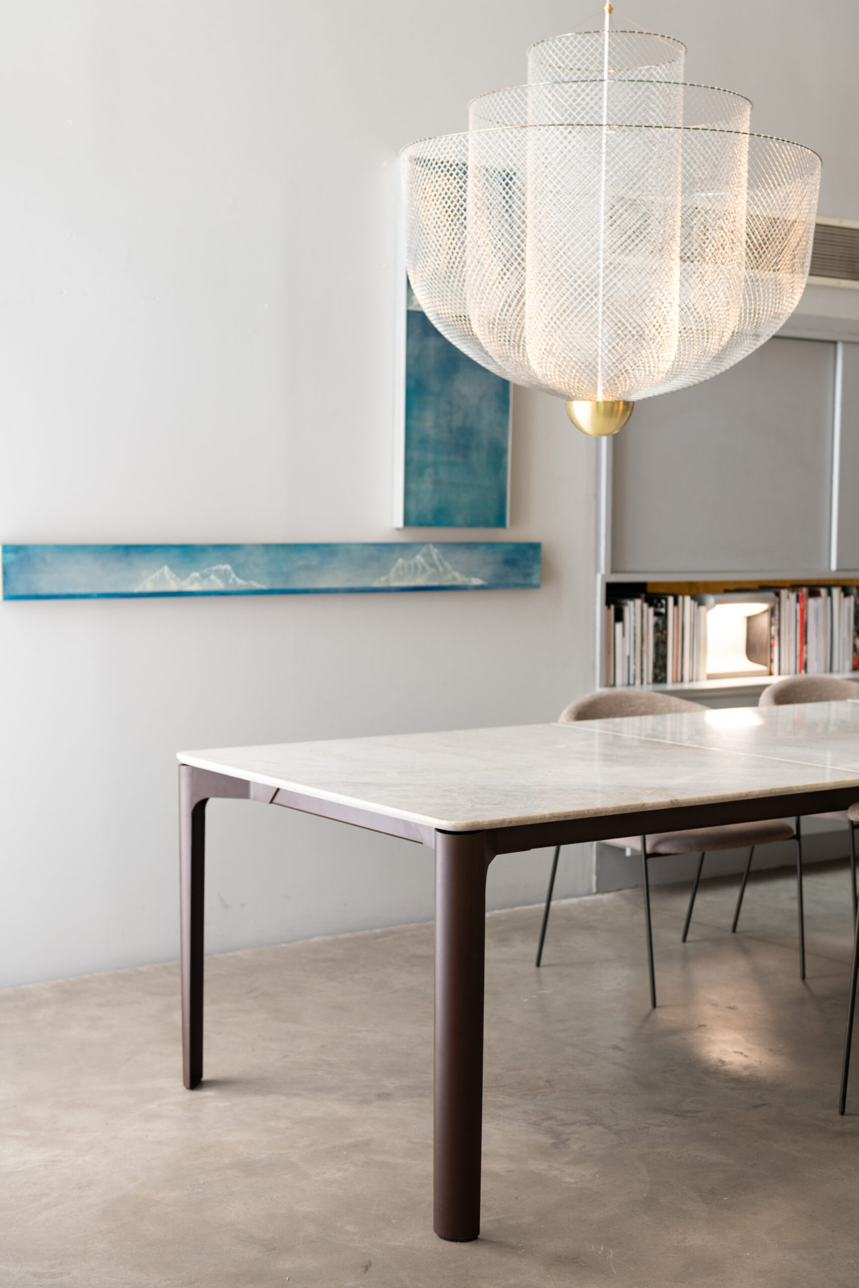 Projetado para se parecer com uma rede de pesca invertida, a versátil Meshamtichs da Moooi contém uma combinação de finos fios de latão e aço que se entrelaçam de forma sofisticada ao redor da luminária criando um efeito de malha.