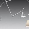 Na versão Decentrata, a icônica Tolomeo mantém o sistema de braços com mola que permite direcionar a luz para qualquer posição com extrema facilidade, mas a cúpula de alumínio foi substituída por uma versão balanceada em alumínio ou por um difusor balanceado em três tamanhos diferentes, que projeta uma luz suave no ambiente.