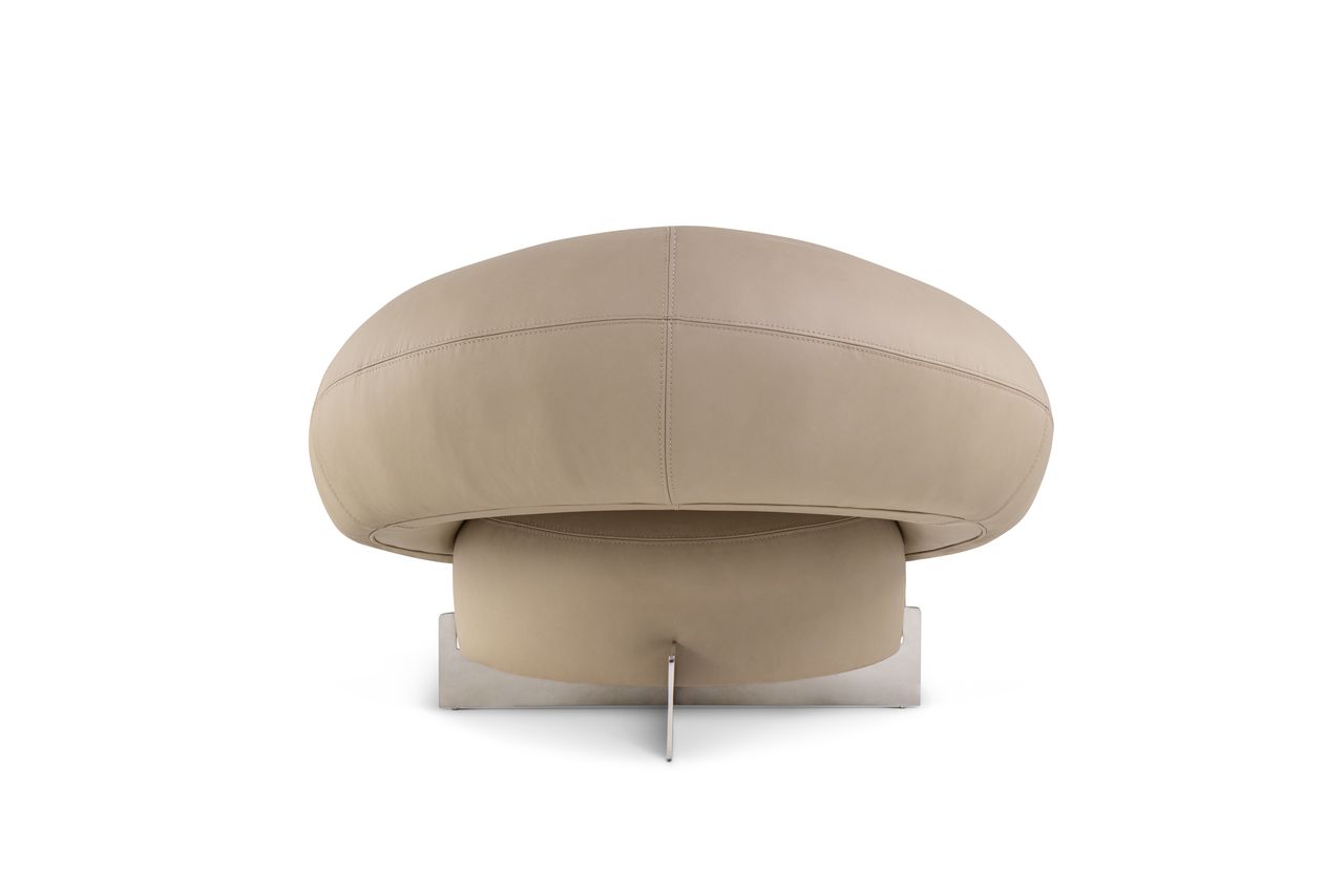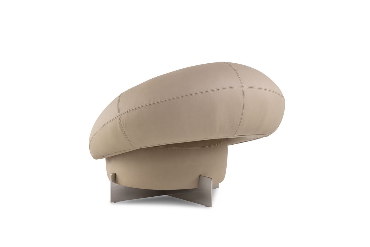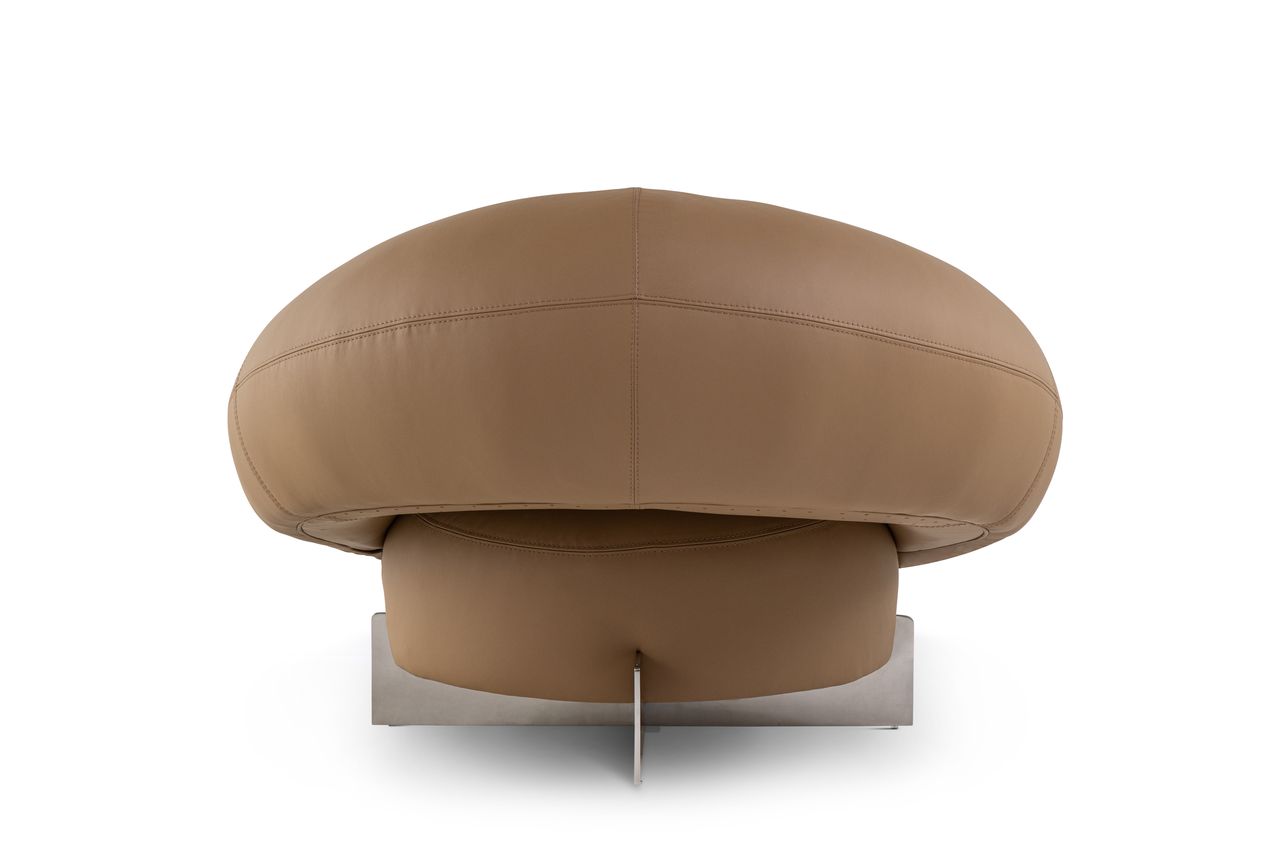 A Poltrona Nonna é um manifesto de acolhimento e presença. Com proporções generosas e volumetria arredondada, ela não se limita ao papel de coadjuvante: é uma peça que entra no ambiente com personalidade marcante, tornando-se instantaneamente o centro das atenções. Seu nome homenageia a figura da avó, que é símbolo de afeto e força, e traduz esse duplo gesto: conforto absoluto e autoridade emocional no espaço. O assento profundo envolve o corpo com suavidade, enquanto o encosto curvo abraça como braços abertos e firmes, porém acolhedores. Todo o conjunto parte da geometria do círculo, evocando o gesto universal do abraço: contínuo, sem arestas, instintivo.