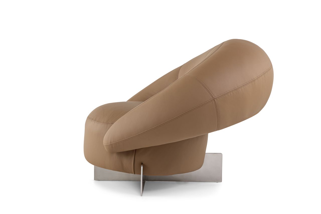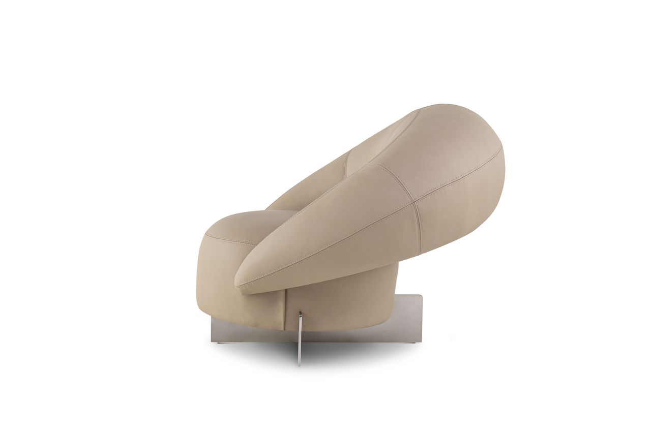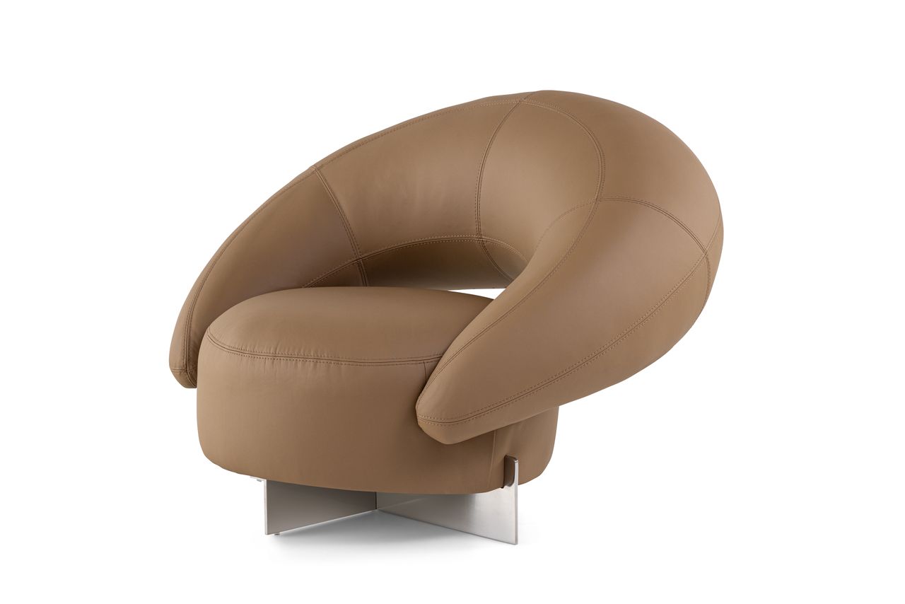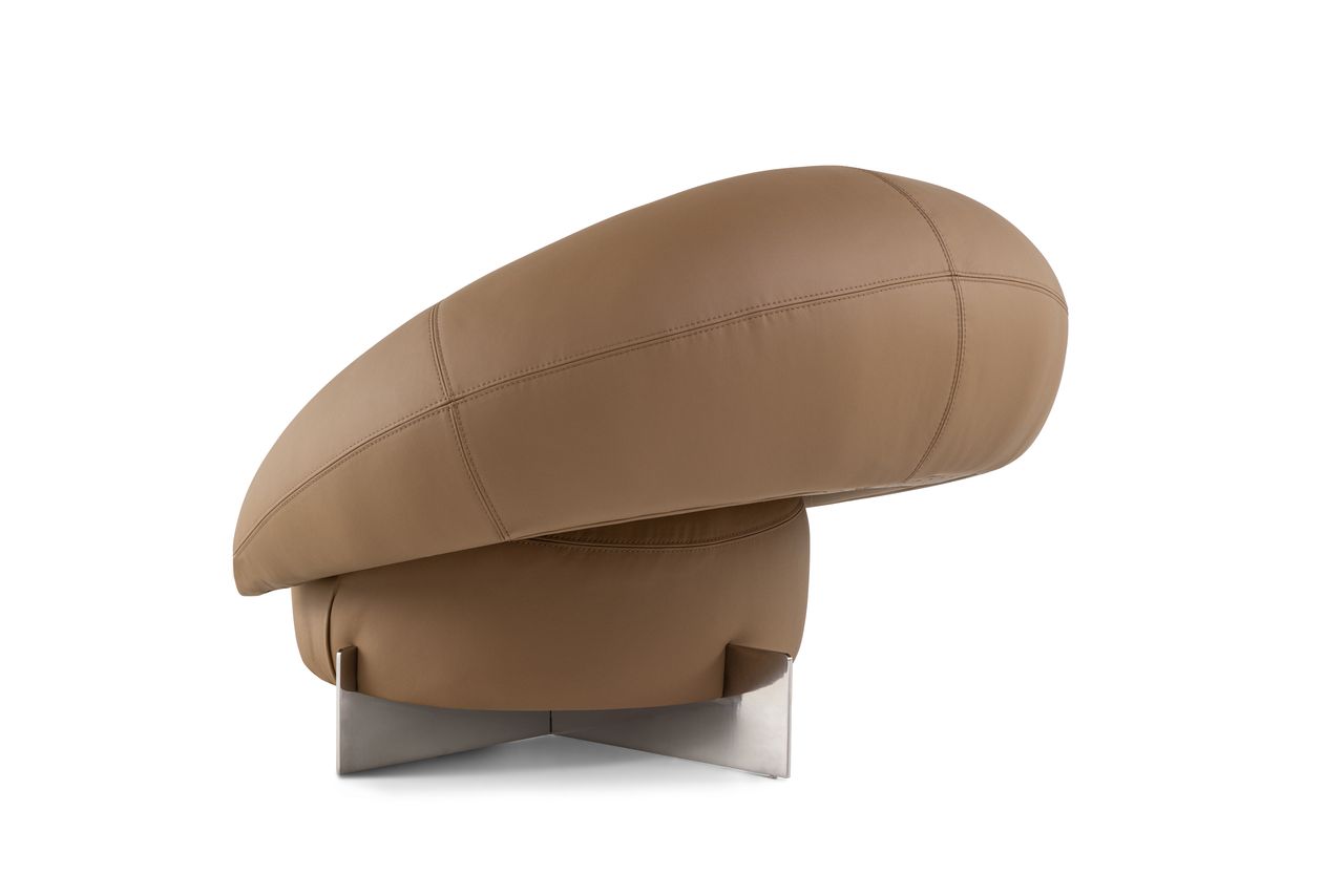A Poltrona Nonna é um manifesto de acolhimento e presença. Com proporções generosas e volumetria arredondada, ela não se limita ao papel de coadjuvante: é uma peça que entra no ambiente com personalidade marcante, tornando-se instantaneamente o centro das atenções. Seu nome homenageia a figura da avó, que é símbolo de afeto e força, e traduz esse duplo gesto: conforto absoluto e autoridade emocional no espaço. O assento profundo envolve o corpo com suavidade, enquanto o encosto curvo abraça como braços abertos e firmes, porém acolhedores. Todo o conjunto parte da geometria do círculo, evocando o gesto universal do abraço: contínuo, sem arestas, instintivo.