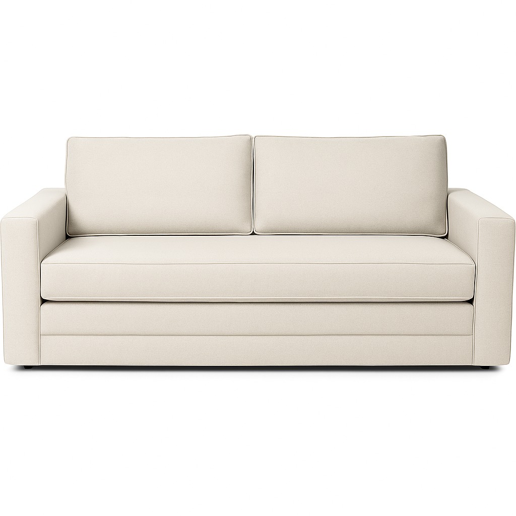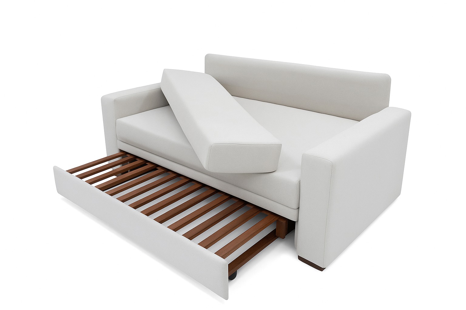 O sistema de abertura é simples e eficiente, possibilitando a transformação do sofá em cama de forma prática, com movimento fluido e estável. O estrado embutido garante suporte adequado para o uso noturno, mantendo o conforto tanto na função de sofá quanto de cama.